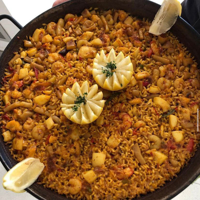 Paella de marisco, (consumido en ele local) 17.00 €, (para llevar) 15.00 €